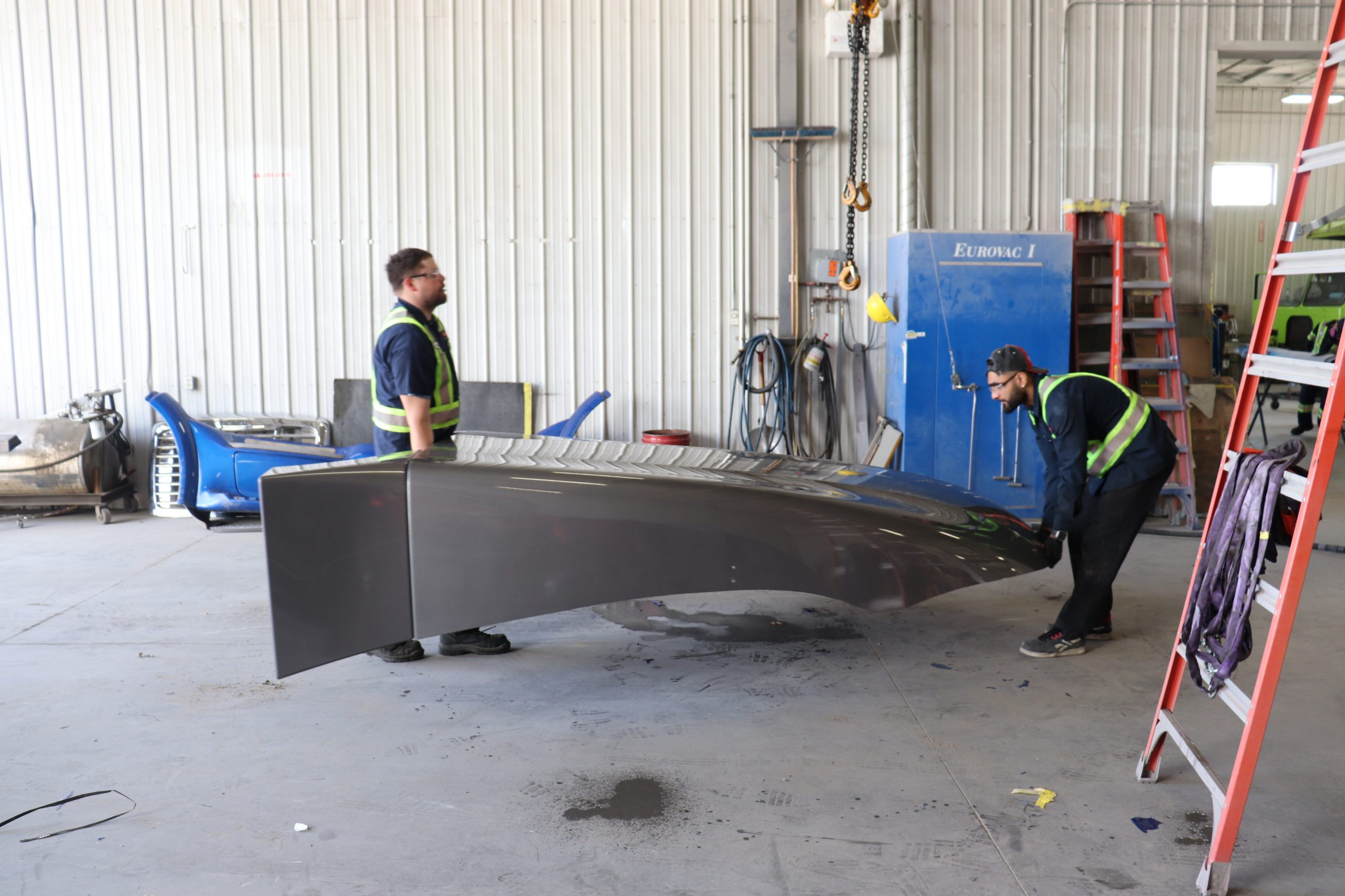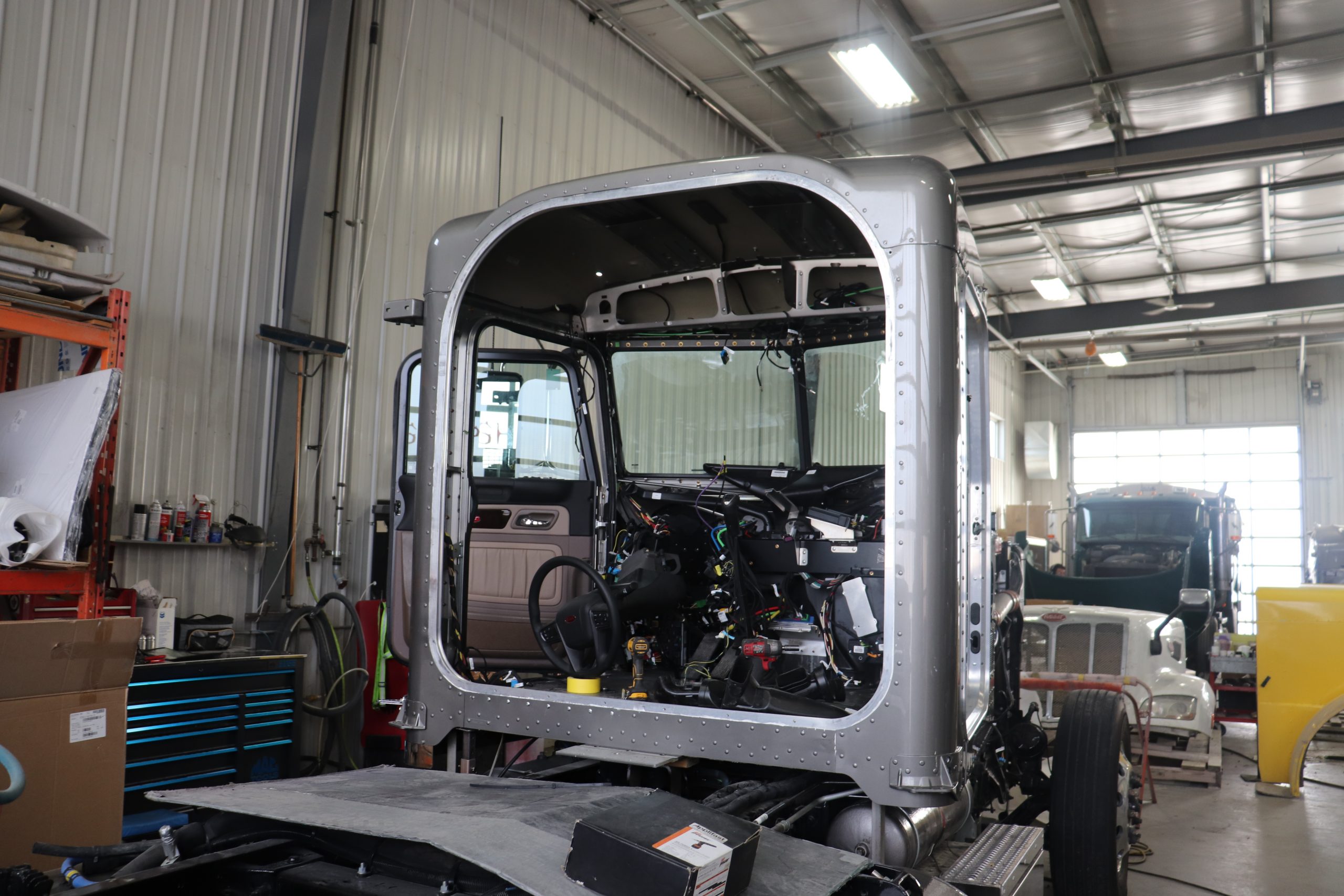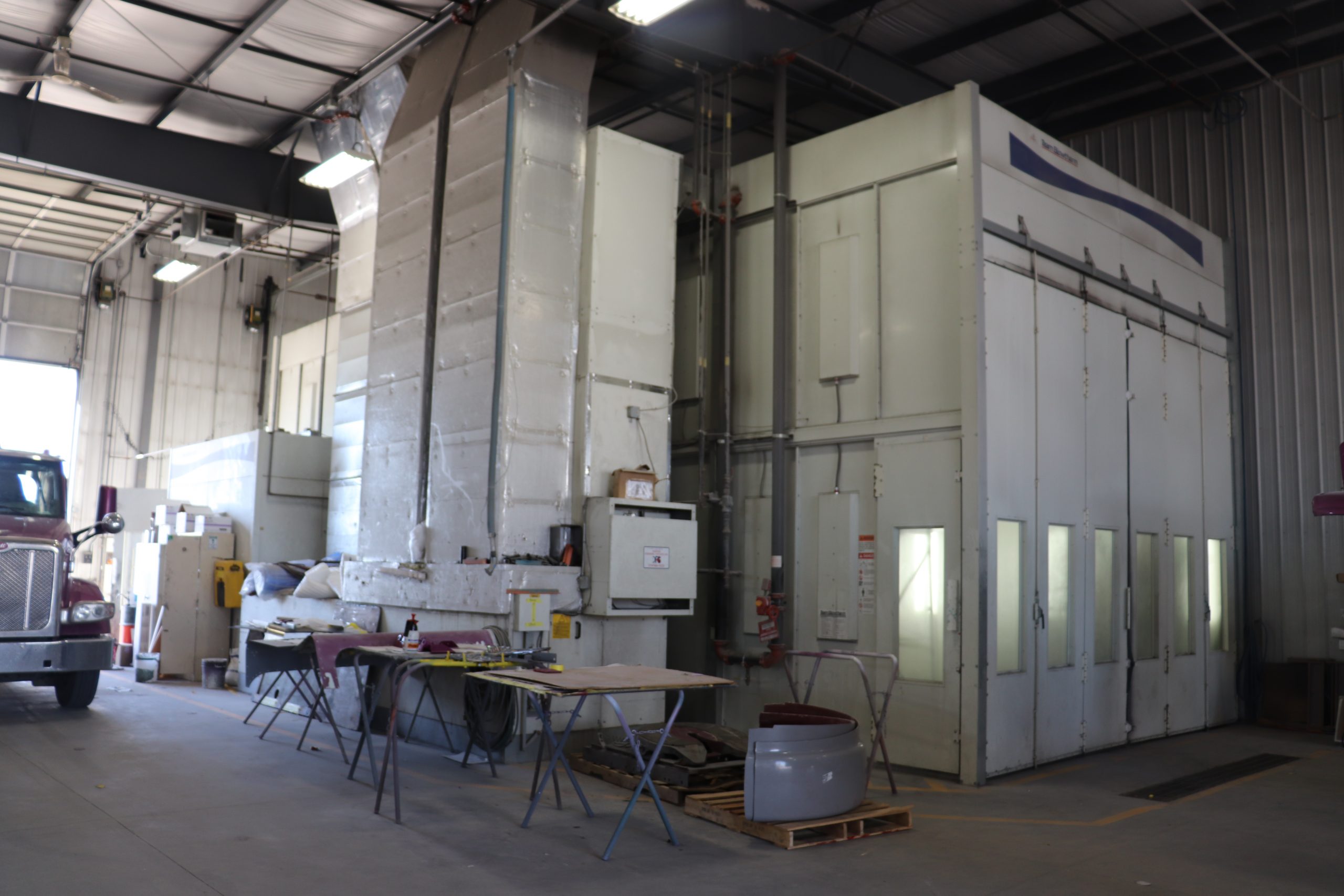 Our ten thousand square foot heavy truck collision centre is equipped with a down draft spray booth and a central vac dustless sanding system. Our technicians are ICAR trained, and painters are all up-to-date with the latest refinish products and are all trained in Axalta Coating Systems, the same systems and paint products which are being used in the factories of Peterbilt and all other truck manufacturers today. This means that colour matching is perfect!