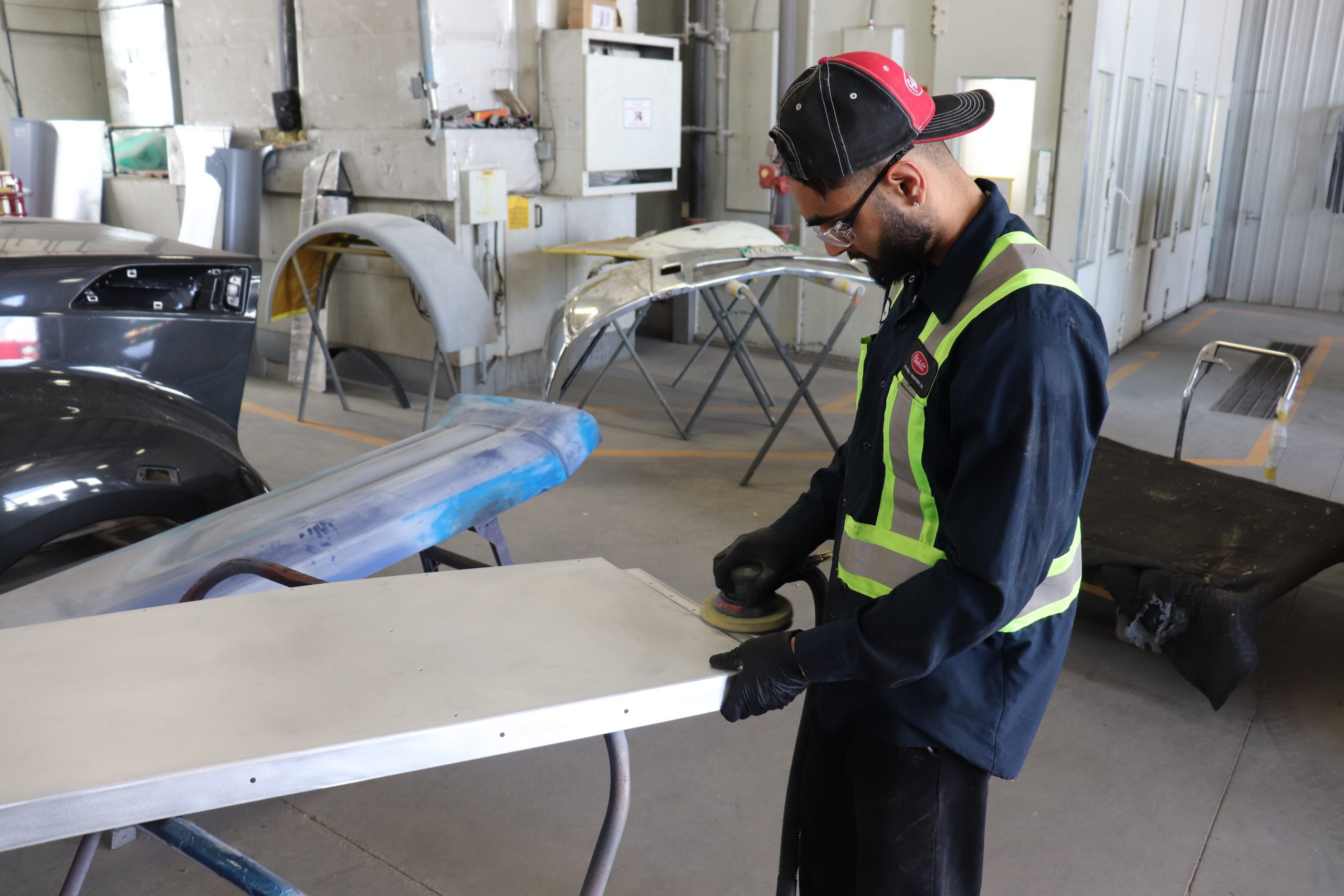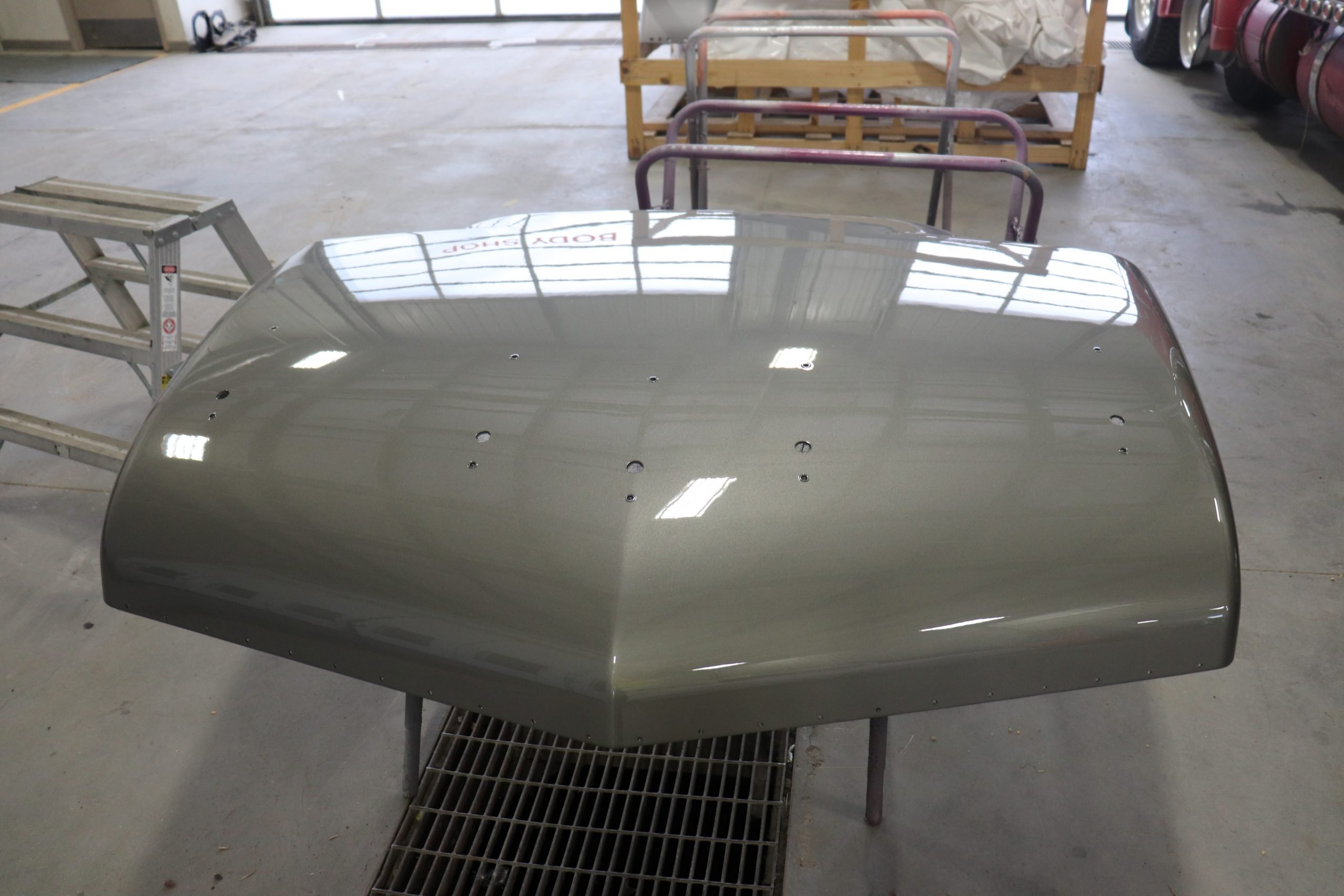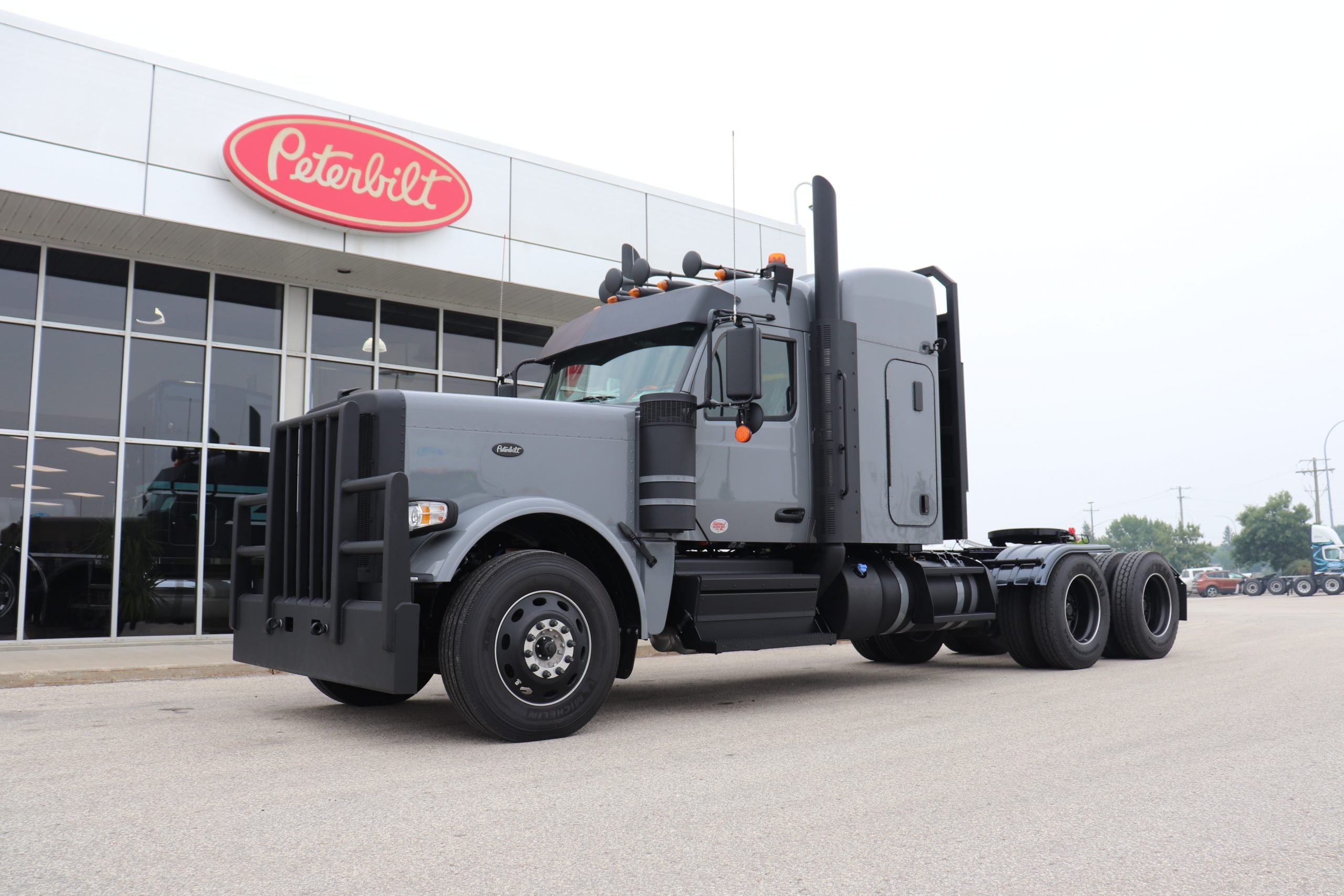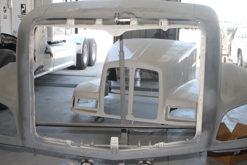 Peterbilt Manitoba Ltd’s heavy truck collision centre has spare hoods for 379 short or long hood, 389, 387, 386, and the 579 model, which we will offer to you for free, in the unfortunate event of a front end collision, thus minimizing your down time so you can keep trucking while your hood is being repaired.