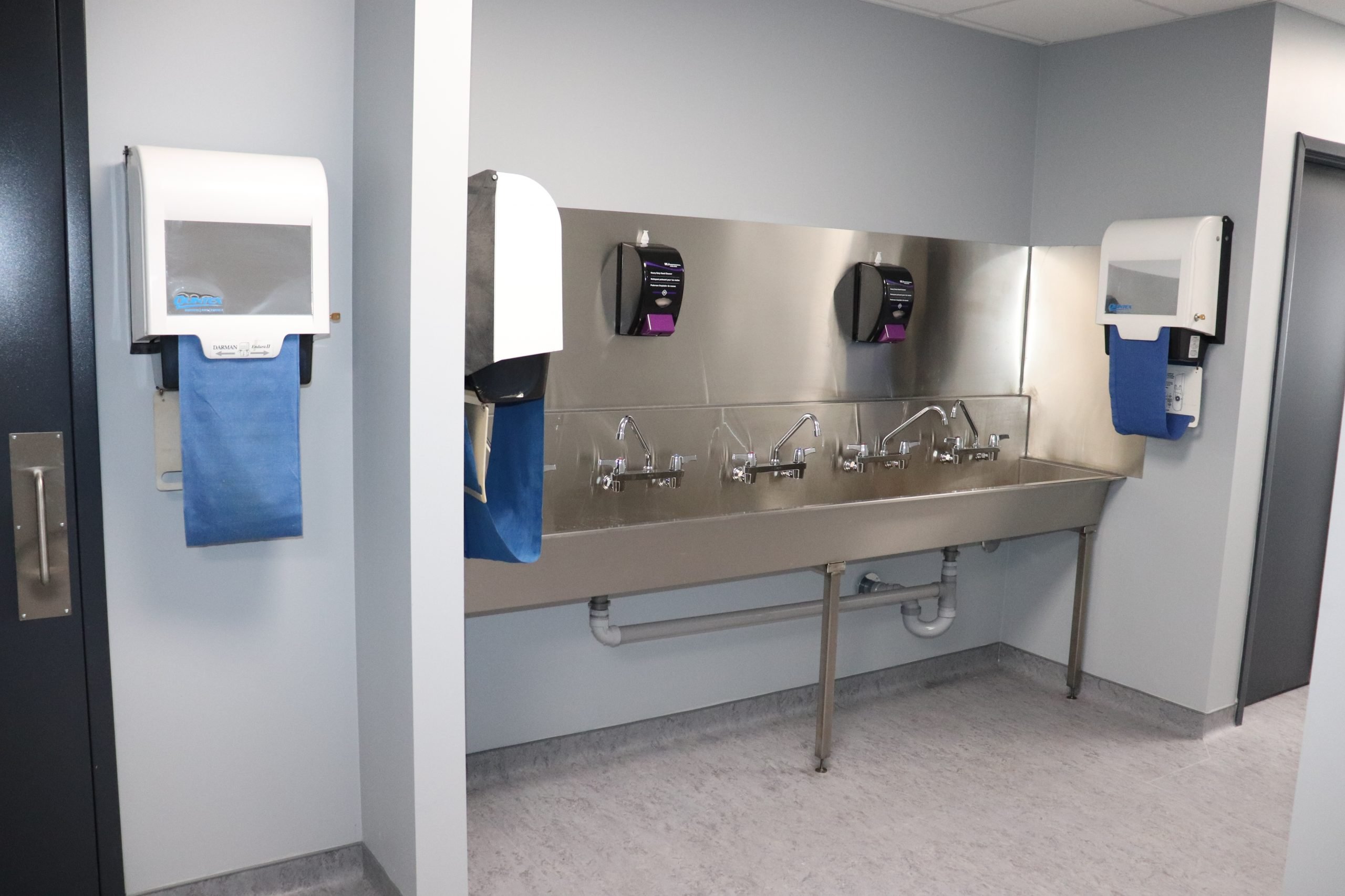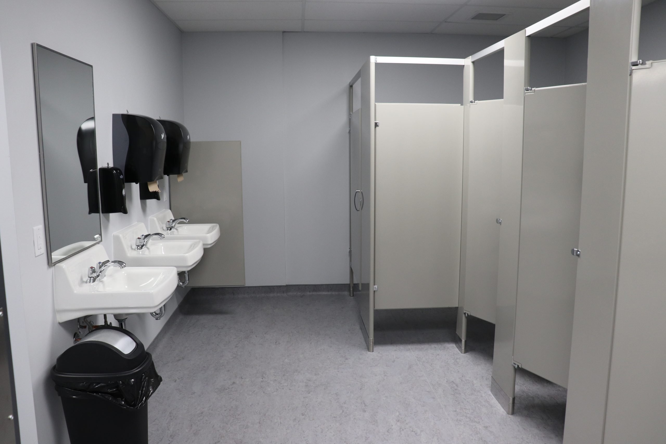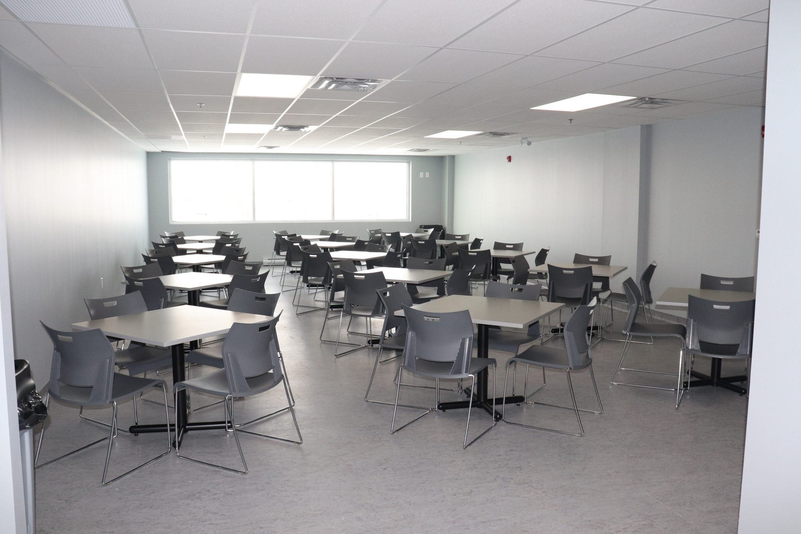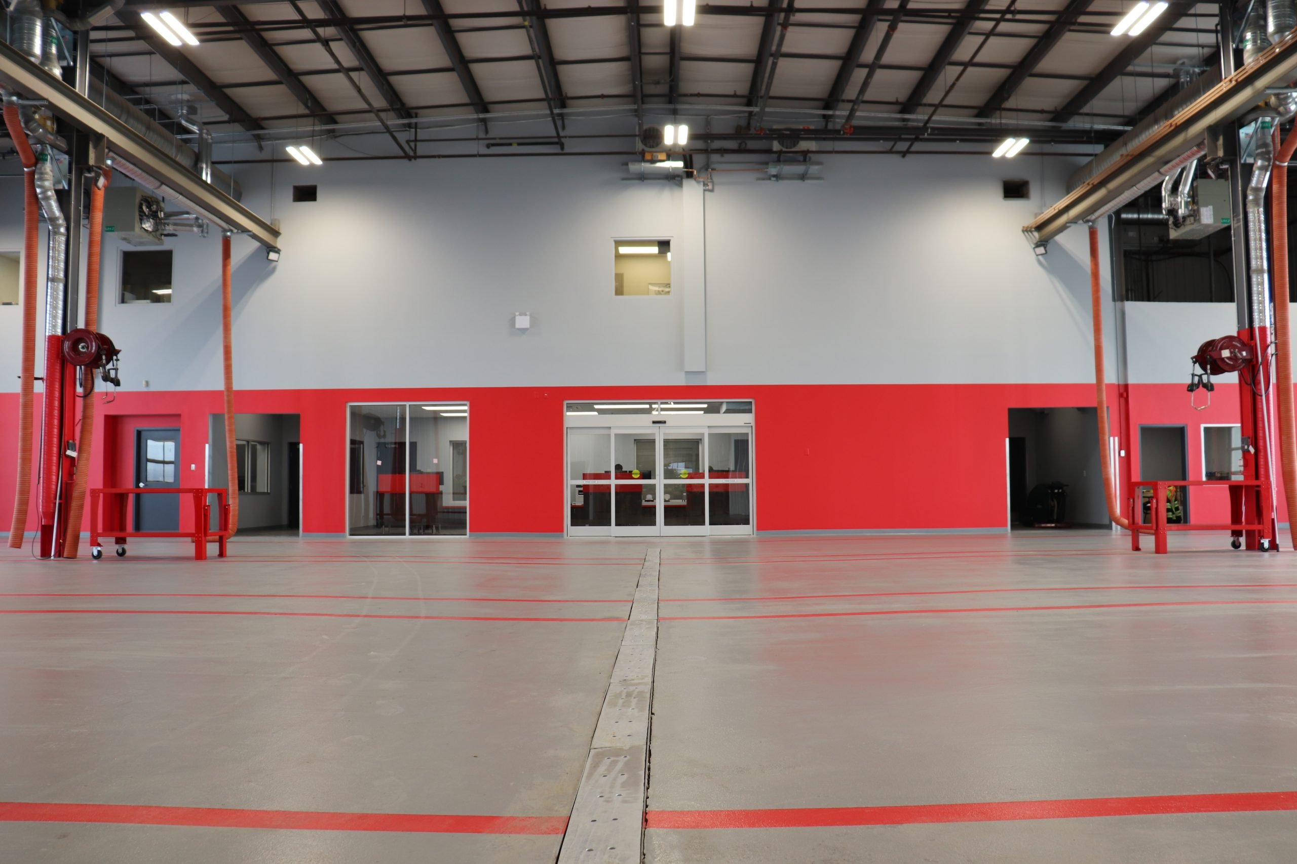 This expansion also added an upstairs technician area for our Service and Body Shop Technicians, which includes a lunchroom (with a 15-table/60-seat seating area, large fridge, dishwasher, 6 microwaves, vending machines, and coffee and water dispensers), double-tiered racking for coveralls, large 5-tap general sink, training room with 4 workstations, women's locker room/washroom/shower, men's locker room/washroom/shower.